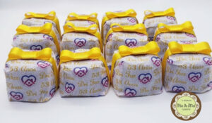 As cores da decoração das embalagens podem ser alteradas de acordo com sua preferência e disponibilidade.